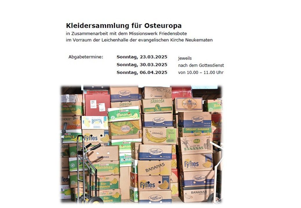bis 6.4. ist die Möglichkeit Kleiderspenden bei der Leichenhalle in Neukematen abzugeben.